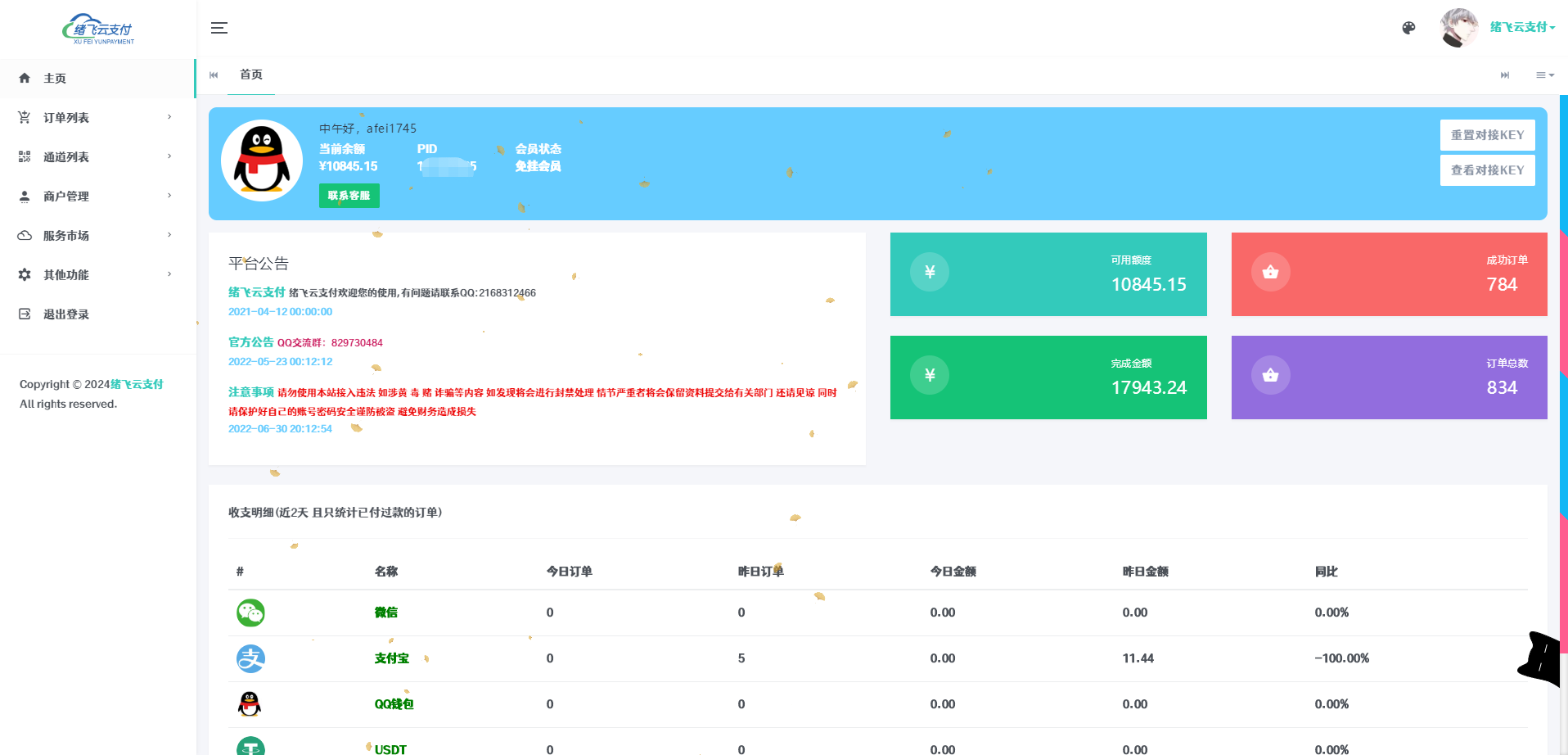 飞沐云支付云码付平台,以信誉求市场,以稳定求发展,行业内最安全,简单易用,专业的技术团队,最放心的免签约支付平台。费率低至0.5%、会员费率更低!!;